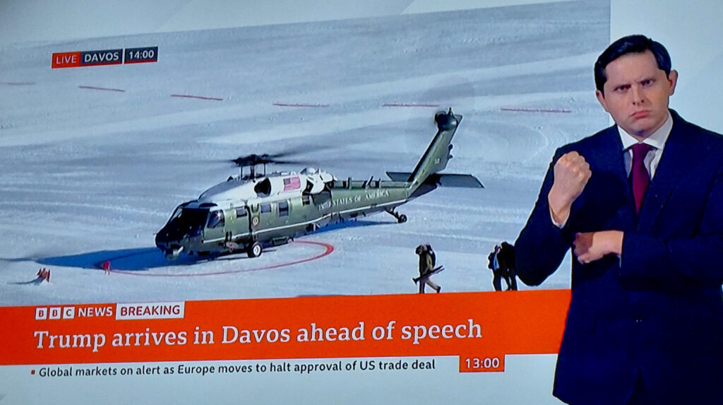 Trump is in Davos and that’s the focus of the news today, but I’m not talking about that either. It was very cold this morning. 11 degrees when I got up. It’s now a balmy 35. I went to the supermarket to get some coffee and some other stuff. The trouble is that I find things that I wasn’t looking for. The other thing I noticed was in both of the two places I went, someone had parked their car outside with the motor running. There wasn’t anyone sitting in either vehicle. They were empty.