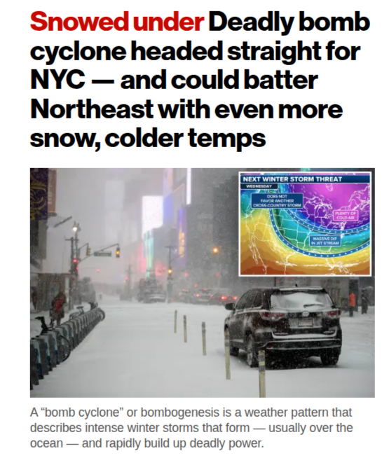 A Deadly bomb cyclone. Could they make it sound any scarier? It’s riculous, but that’s the fake news today. It’s always been fake news anyway. People don’t want a headline that’s bland and boring, what’s the point?